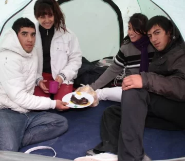 Los chicos llegaron al Complejo Turístico Religioso Ceferino Namuncurá a las 9,30, pero no desempacaron hasta las 11. A esa hora, uno de los papás les llevó un par de carpas para que se resguardaran del frío. Ayer, estos elementos se convirtieron en los aliados principales en los picnic que los jóvenes realizaron en los campings para festejar su día. Algunos hasta almorzaron dentro de las mismas.