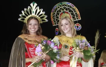 Las candidatas después de desplazaron y formaron un gran círculo, que fue cerrándose, para luego abrirse, levantando y bajando sus báculos. Una a una fueron caminando a sus posiciones y nuevamente generaron un círculo que les permitió mirar de frente a la gente favorecido por la fisonomía del escenario.