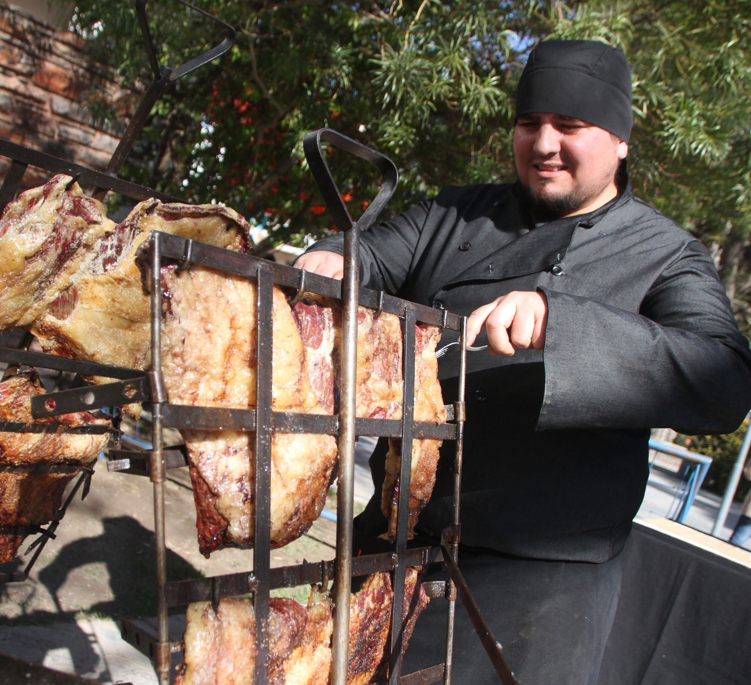 Días atrás se llevó a cabo en Jáchal el Campeonato del asado y la punta de espalda. El chef Mauricio Barón se apostó en la previa, en la plaza departamental, y causó furor entre los peatones. Preparó una punta de espalda bien condimentada y a la parrilla para repartir.
