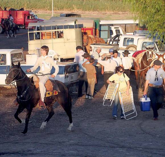 El sol pegó fuerte en el predio gaucho José Dolores, que está en el Médano de Oro. Es por eso que los jinetes y los caballos empezaron a llegar casi al anochecer. Aún cuando el inicio del festival estaba previsto ayer a las 17. Fueron las familias las que coparon el lugar. Se apostaron con sillas, conservadoras y mesas para disfrutar una vez más el festival que sirvió como primer fecha clasificatoria para ir a Jesús María.
