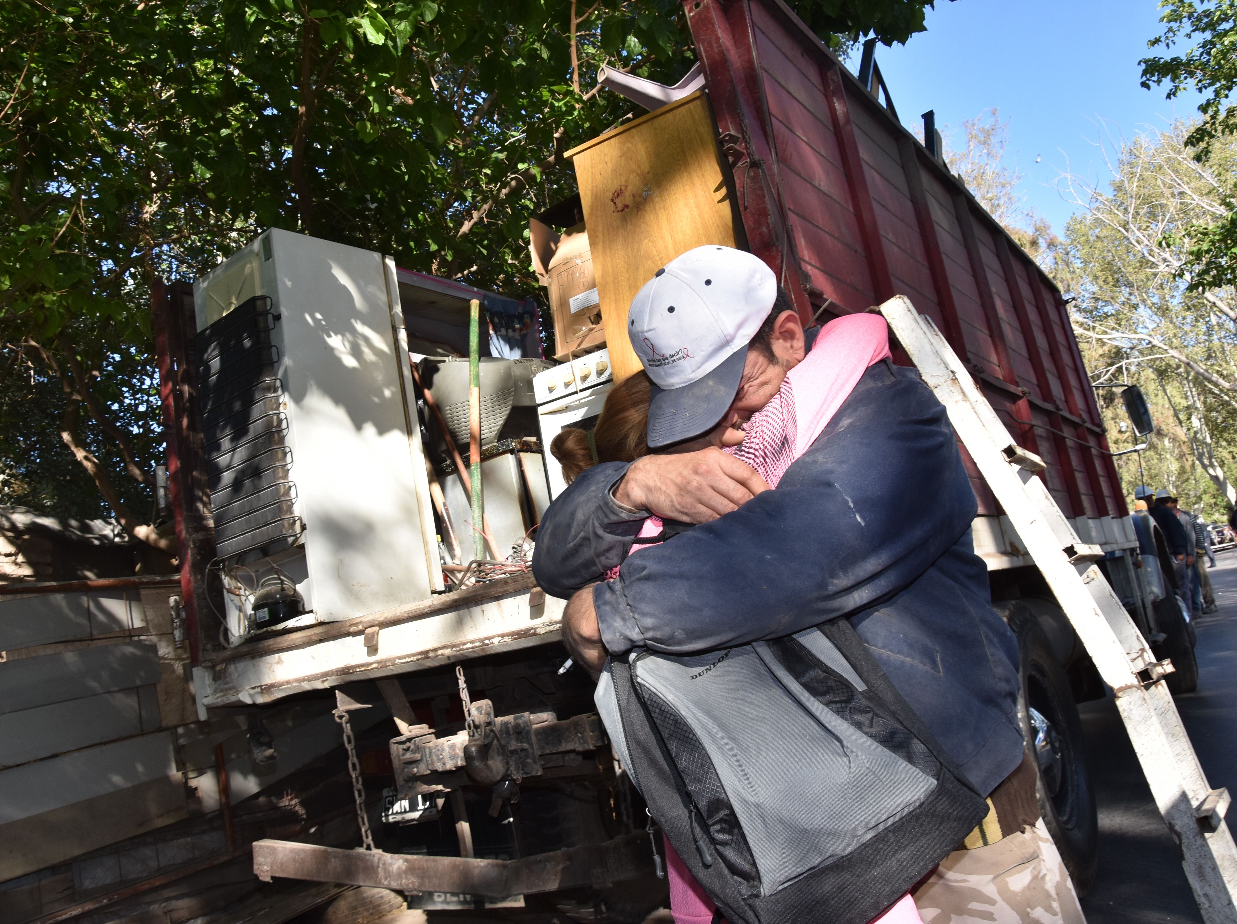 A las 7,30 de ayer comenzó el traslado de las 10 familias que vivían en el asentamiento sobre calle Coll, entre Cabañas y Santa María de Oro, en Rivadavia. El mismo se hizo en dos tandas. Movilidades oficiales trasladaron primero a niños y mujeres embarazadas, luego al resto.