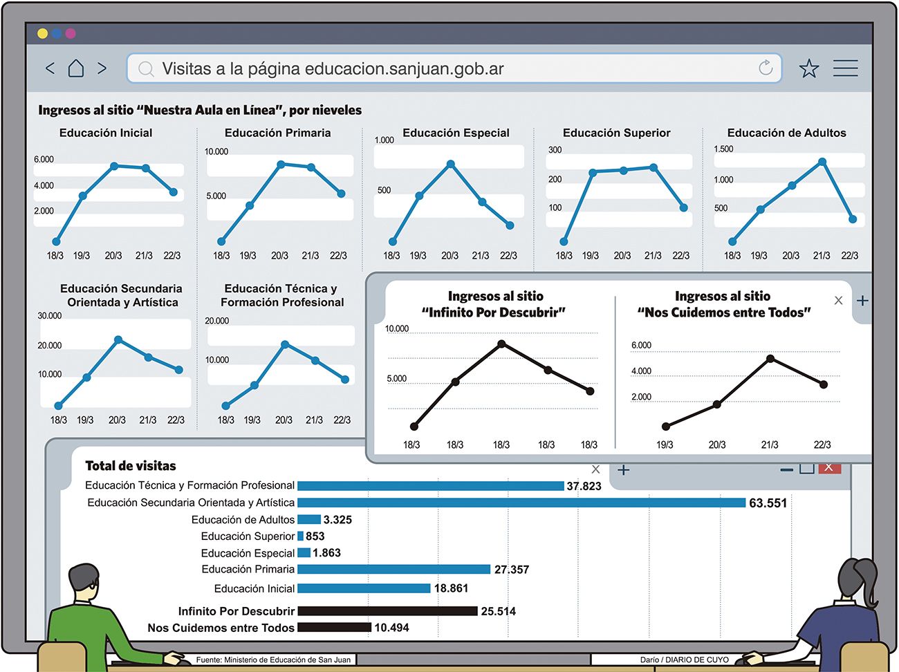 Además de las guías, que fueron consultadas por el 86% del alumnado sanjuanino, también hubo muchas visitas a los contenidos educativos virtuales de "Nos Cuidemos entre Todos" y de "Infinito x Descubrir".