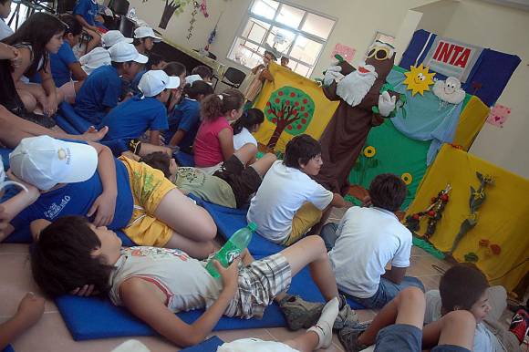 La historia, contada por títeres y muñecos, comienza con una semilla que describe el proceso de crecimiento de una planta. Y continúa con un árbol que tiene 200 años y recuerda su vida. Entremedio, cuenta cómo eran los cultivos en la época colonial y cómo es la alimentación de hoy. Y destaca el Bicentenario de la Patria y los 20 años de vida del programa Pro-Huerta. Del otro lado del escenario, los niños miran con atención, sentados en el piso, con los codos sobre las rodillas y las manos sosteniendo sus caras. Eso se vio en una de las presentaciones que está realizando la agencia San Martín del programa Pro-Huerta, perteneciente al INTA, en las colonias de vacaciones de algunos departamentos.
