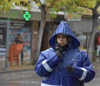 Durante la mañana, en las calles de la Ciudad se vio gente muy abrigada, caras de frío y paraguas.