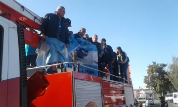 Los excombatientes pisaron suelo sanjuanino y recorrieron las calles en un autobomba saludando al pueblo.