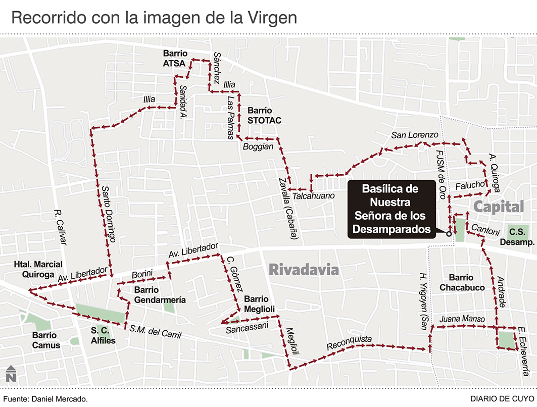 En la Basílica Nuestra Señora de los Desamparados decidieron darle un sentido solidario a las Fiestas Patronales en honor a la Virgen. Lanzaron una colecta de alimentos no perecederos para ayudar a familias que están atravesando una difícil situación económica. Las donaciones se recibirán durante los días de la Novena que ya empezó. Debido a la pandemia no se realizará la tradicional procesión, aunque sí la imagen de la imagen de la Virgen recorrerá las calles para bendecir a la comunidad (ver infografía). Será el próximo domingo.