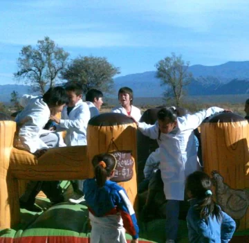 En su última actividad, el grupo llegó a San Roque con mochilas personalizadas para cada alumno, útiles, guardapolvos, zapatillas, camperas, cremas para la piel, frazadas, juegos didácticos y 20 netbooks donadas por el Ministerio de Desarrollo Humano. Pero además, aportaron un castillo inflable, payasos, globos, golosinas, títeres y la animación de los hijos de las mujeres del grupo, como Candelaria y Juan Ignacio Uñac, Franco Gioja, Macarena, Agustina y Matías Gaitano y los chicos de La Merced, Jesús Torres y Jorgelina, Melisa y Andrés Jordán.