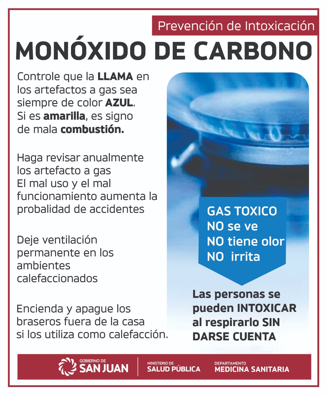 Cabe recordar que el monóxido de carbono es un gas venenoso que no tiene color, olor ni sabor y por eso es muy difícil de percibir. Se origina por la combustión incompleta de gas natural, gas licuado, kerosene, carbón, leña, nafta (en motores de combustión), madera, papel y aceite, entre otros.