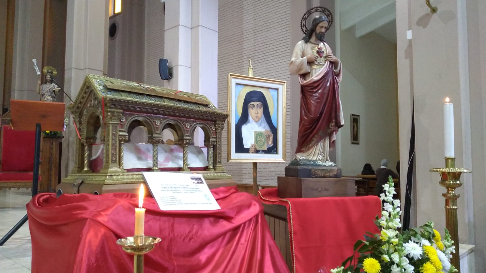 Las reliquias de primer grado de Santa Margarita fueron traídas desde el Santuario Paray le Monial y recorrerán el país en el marco de la llamada “Misión Corazón Ardiente”, que organiza la Misión Fátima Argentina, Guardia de Honor del Sagrado Corazón y la colaboración de la Sociedad de Peregrinos, con el lema “Al menos, tú, ámame”.