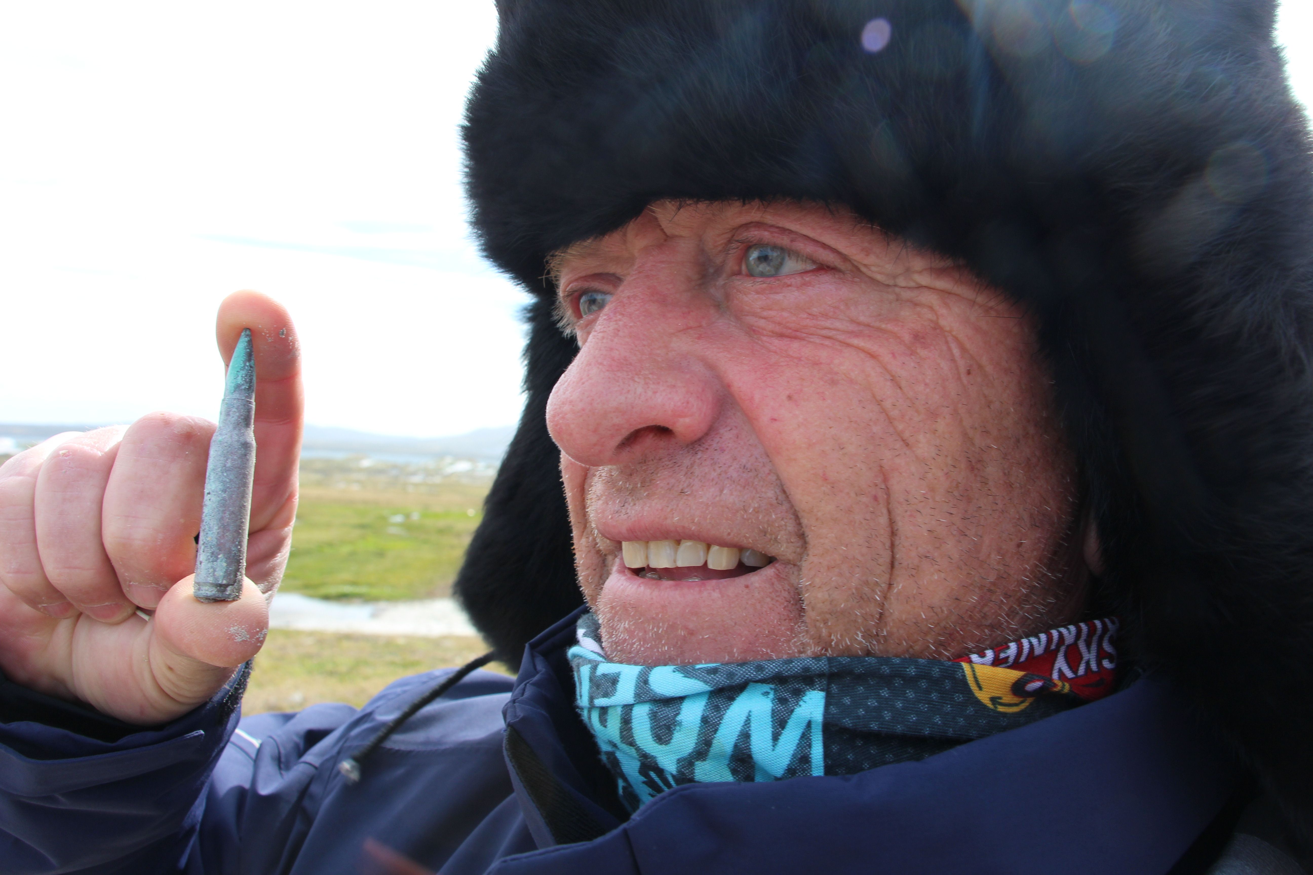 Los minutos transcurrían en el gélido monte cuando Osvaldo Escalona alza la voz, “estos cables nos permitían estar comunicados”, asegura. Se refiere a un tendido que iba a la intemperie para mantener conectadas a las posiciones de combate. A los metros se deja ver entre la turba un cable grueso que – explicaron- servía para mandar información de los radares a los cañones; “esto nos guiaba a la hora de disparar”, detalla Rubina que manejó un cañón antiaéreo en Darwin.