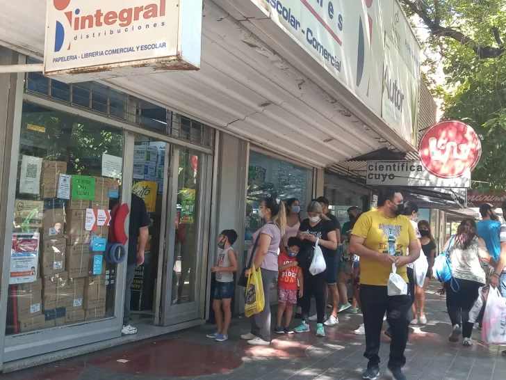 Faltando pocas horas para el inicio del ciclo lectivo 2022, los sanjuaninos aprovecharon el último día de feriado nacional para realizar las compras escolares. En varias librerías se vieron largas filas en el ingreso, mientras que los locales que se dedican a la venta de mochilas o indumentaria colegial también registraron buen movimiento.