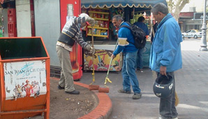 San Juan, 10 de mayo.- Las personas que esta tarde pasen por Plaza 25 de Mayo notarán mejoras. Y es que desde temprano, empleados de la Municipalidad de la Capital realizan tareas de mantenimiento. Pintura de pisos y bancos, baldosas nuevas y demás, son algunas de las tareas que realizaron.