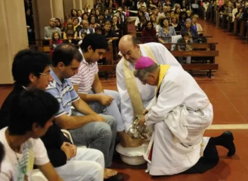 Sentados cerca del altar y con cara de nervios y alegría los 12 hombres descalzaron su pie derecho para que Delgado hiciera el rito de todos los Jueves Santos. El lavado de pies sucedió anoche durante la misa donde se recordó la Última Cena de Jesucristo con sus apóstoles. En la ceremonia la gran cantidad de personas presentes hizo que se viviera una jornada de mucha emoción.