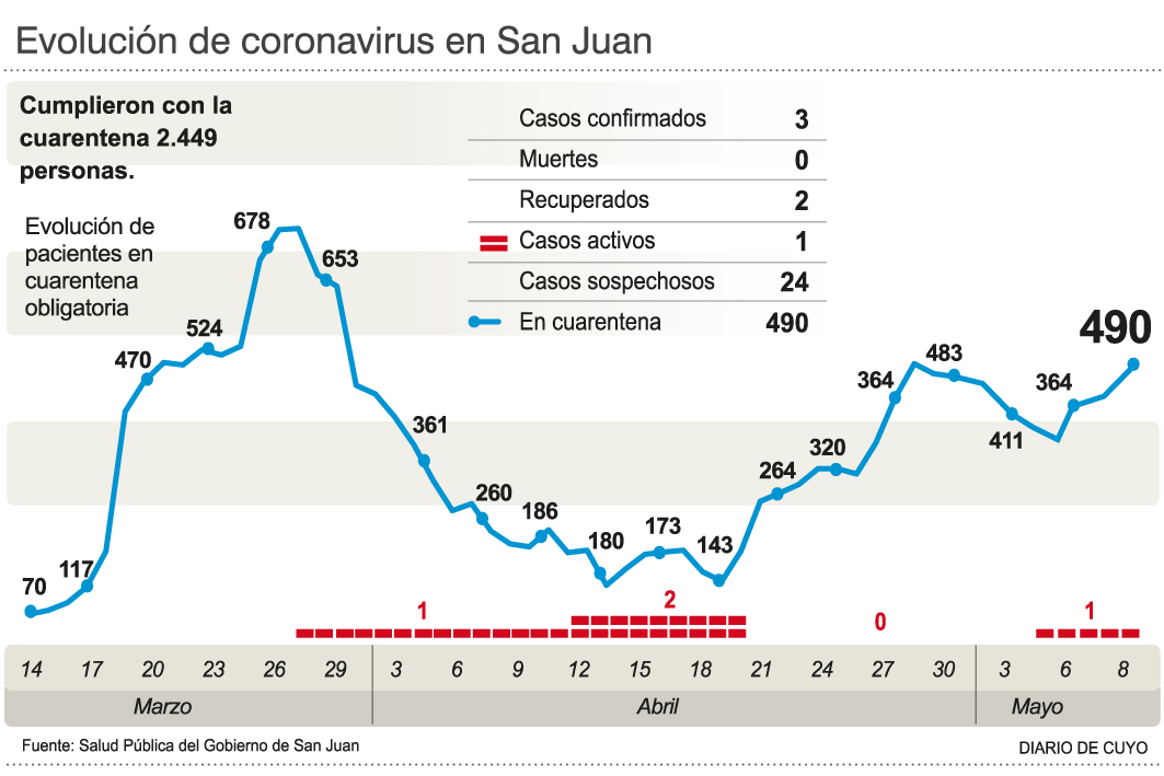 Es trabajador de un emprendimiento minero en Calingasta y el 22 de abril ingresó a San Juan desde Mendoza. Cumplió el aislamiento en un hotel y, tras un testeo por coronavirus que dio negativo, le dieron el apto para dejar ese confinamiento el 6 de mayo. Ese mismo día, dijeron desde Salud Pública, viajó a Barreal para presentarse en su puesto laboral. En el trayecto se sintió mal y al llegar al campamento lo derivaron al hospital de Barreal. Allí se activó el protocolo de coronavirus y cumplieron con la toma de muestras, que fueron enviadas al laboratorio del hospital Rawson.