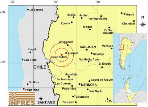 Concretamente, el epicentro se ubicó 113 km al Oeste de la ciudad de San Juan; 150 km al Noroeste de Mendoza; 22 km al Suroeste de Barreal