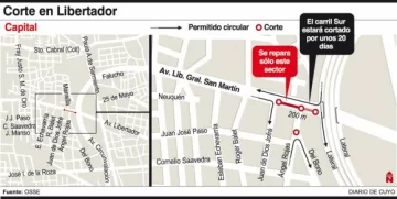 A pesar que el trabajo de perforación y cambio de caños abarca solamente una cuadra, serán dos las que estarán cortadas al tránsito. Por esto, a partir de hoy y durante unos 20 días (fecha en la OSSE que estipula finalizar la obra), los automovilistas que viajen desde el departamento de Rivadavia hacia el centro sanjuanino, no podrán circular desde Juan de Dios Jofré hasta Lateral de Circunvalación. Sí lo podrán hacer los que transiten dirección contraria, porque los cortes y los arreglos se harán en el carril Sur (ver infografía).