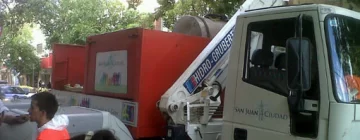 San Juan, 26 de junio.- Un hecho insólito revolucionó esta tarde las calles del microcentro. Tres empleados de la Municipalidad de Capital limpiaban las pintadas de un contenedor cuando se acercó un policía que terminó demorando al chofer.