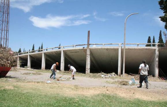 En la parte de atrás (que da a la calle 25 de Mayo) del velódromo del estadio abierto del Parque de Mayo había ramas y basura. Este diario ayer publicó una nota reflejando este problema que contrasta con el buen estado del estadio en su parte interior. Ayer por la mañana empleados de la Subsecretaría de Deportes limpiaban el sector. Al mediodía, media docena de personas había llenado 4 contenedores con las ramas y basuras que opacaban la imagen que tiene el sitio. Quedaba aún por sacar un poco más de ramas y los hombres esperaban que un camión les llevara otro contenedor para terminar el trabajo.