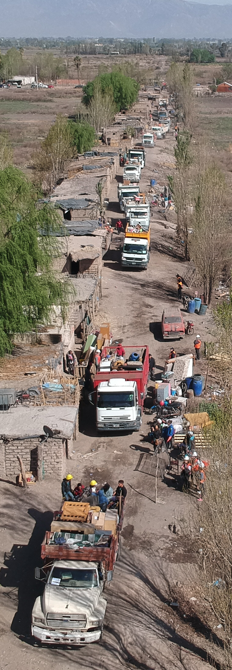 Los camiones tomaron por Calle 5 y en pocos minutos llegaron al barrio más grande de San Juan. La idea del Gobierno fue localizar a esta gente dentro del departamento en el que ya vivían. Con un operativo policial para ordenar la mudanza, los camiones entraron hacia el final del barrio, que es donde ubicaron a estas familias.