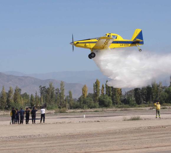 Durante dos días unos 60 bomberos sanjuaninos se prepararon para poder combatir focos de incendio, pero desde el aire. Es por eso que ya empezaron a probar un avión hidrante, que quedará en la provincia hasta septiembre. Esta aeronave fue enviada por la Nación y permanecerá en San Juan, durante la época que más incendios hay en la zona rural. La iniciativa surgió en el marco de la puesta en marcha del Plan Nacional de Manejo del Fuego, que depende del Gobierno nacional. Es la primera vez que se cuenta con un vehículo de estas características para combatir incendios.
