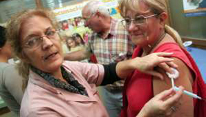 San Juan, 15 de abril.- Hoy llegaron a San Juan las primeras 23.000 dosis de vacunas antigripales para mayores (sector que comprende a las personas de riesgo a partir de los 3 años). Según informaron desde el Ministerio de Salud, las personas ya pueden recibir su dosis en el Vacunatorio Central y se espera que el próximo martes, estén disponibles en los más de 300 centros de salud que hay en toda la provincia.