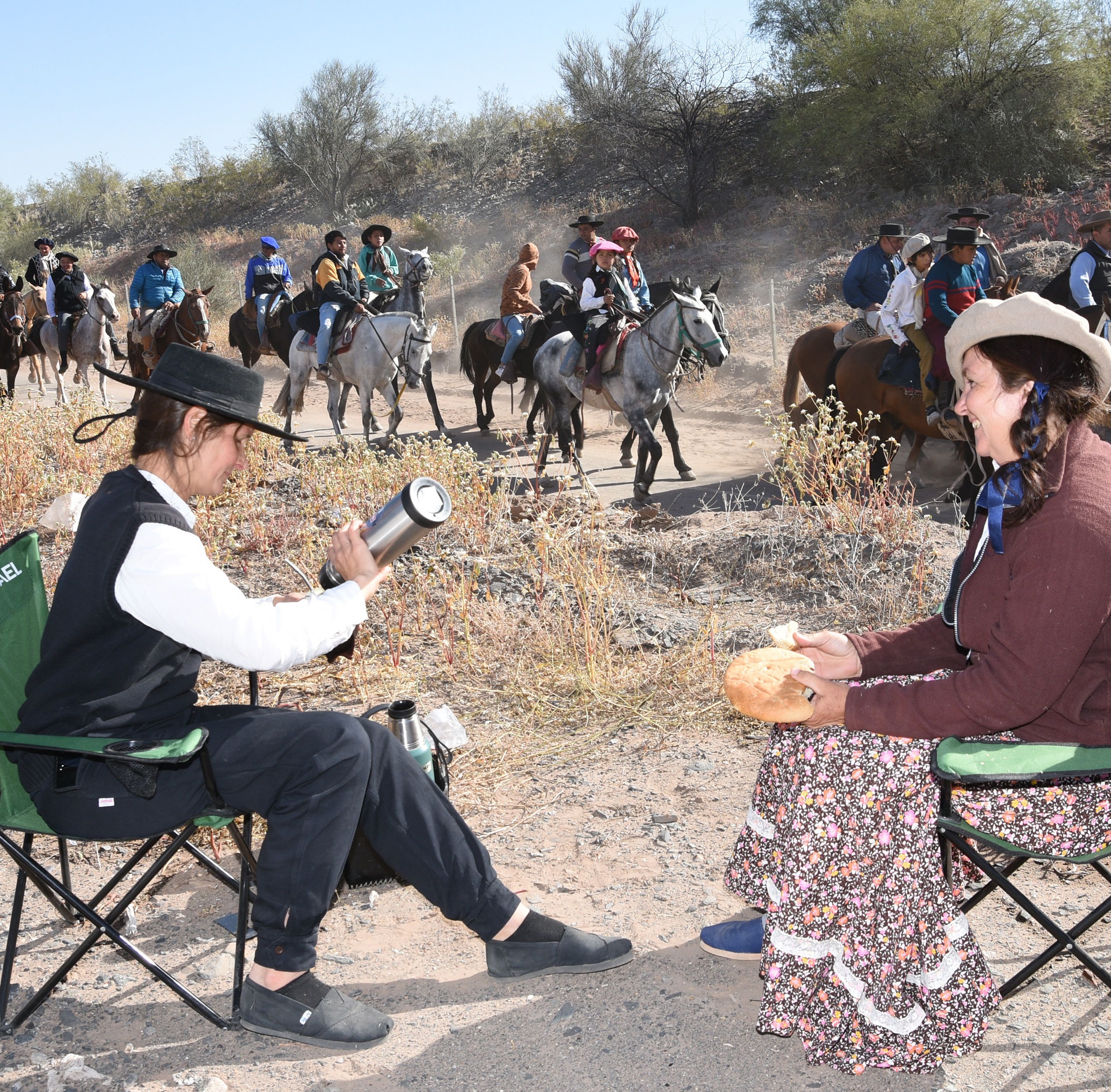 Nadie quiso perderse este festejo que se realizó en homenaje a los veteranos y caídos en la Guerra de Malvinas. Si bien la mayoría de los campamentos montados a la orilla de la ruta y bajo algún aguaribay estaban a cargo de gauchos, hubo otros que fueron organizados por espectadores que quisieron vivir la cabalgata de una manera diferente. "A las 6 de la mañana salimos desde Rivadavia para ubicarnos a la orilla de la ruta y ver pasar los gauchos temprano. Cuando pasen nos vamos para la Difunta Correa para conseguir un lindo lugar para comer un asado", dijo Susana Lorenzo, una mujer que le encanta ver esta celebración. Mientras que más tarde, Rosana Navarro, una señora de Chimbas, comentó que ellos a las 7 de la mañana llegaron a Vallecito y que les costó mucho encontrar un lugar cómodo porque el lugar ya estaba colmado.