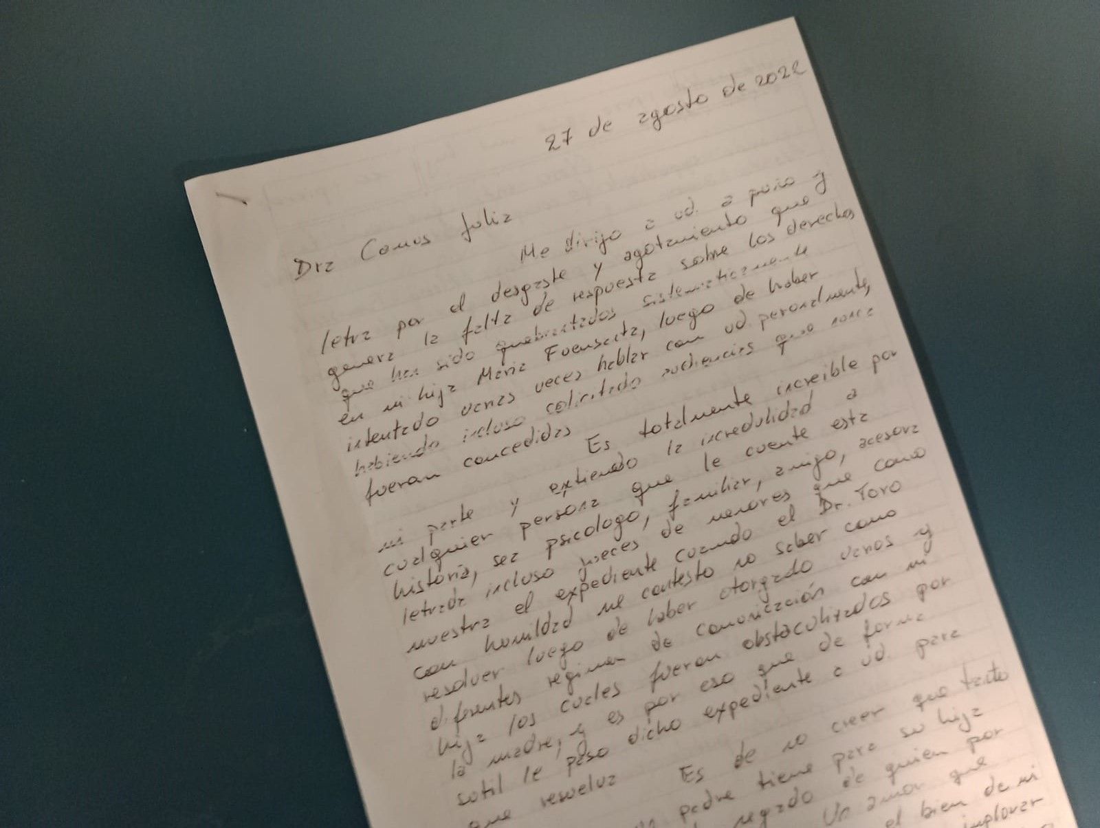 Desesperado por la posibilidad de que su hija se vaya del país, Luis le escribió una carta de puño y letra a la jueza Camus, pero ella se negó a recibirla.