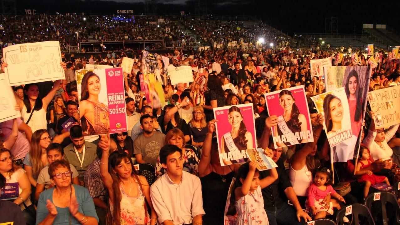 Maru Silva y Federico Fager, junto a un DJ, tuvieron una tarea no menor este sábado por la noche: entretener al público. Es que, desde muy temprano, la gente llegó para ubicarse de la mejor manera en las sillas y tribunas del Escenario San Juan. La espera fue larag porque las puertas se abrieron a las 18.