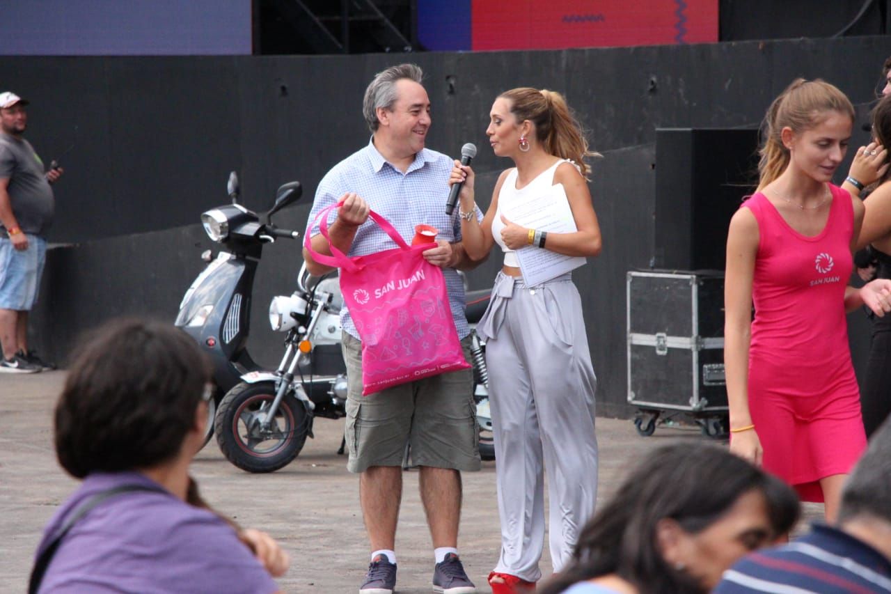 La zanahoria para buscar la atención de la gente fueron decenas de regalos, pero con alguna consigna para lograr hacerse con un premio. Por ejemplo, los conductores propusieron que quien acerque una semita con chicharrones al escenario iba a hacerse acreedor de una bolsa con el merchandising de la Fiesta Nacional del Sol.