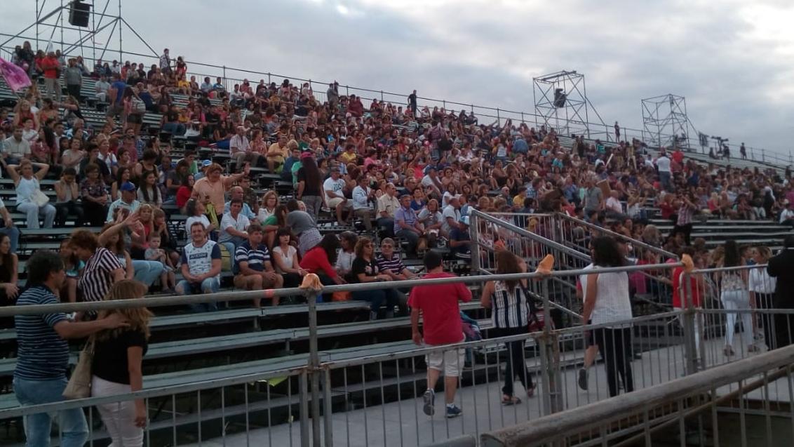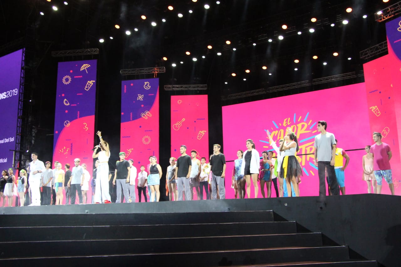 Maru Silva y Federico Fager, junto a un DJ, tuvieron una tarea no menor este sábado por la noche: entretener al público. Es que, desde muy temprano, la gente llegó para ubicarse de la mejor manera en las sillas y tribunas del Escenario San Juan. La espera fue larag porque las puertas se abrieron a las 18.