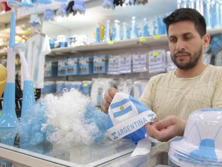 Falta menos de una semana para que arranque el Mundial de Fútbol y la venta de productos para alentar a la Selección argentina aumentaron. Desde locales que venden cotillón e indumentaria celeste y blanca dijeron que las cornetas, los gorritos, las pinturas para la cara, las vinchas con decoración, las alcancías de la Copa del Mundo, anteojos celestes y blancos, piñatas y caretas de la imagen de Lionel Messi son los más pedidos. Hay productos desde los $60.