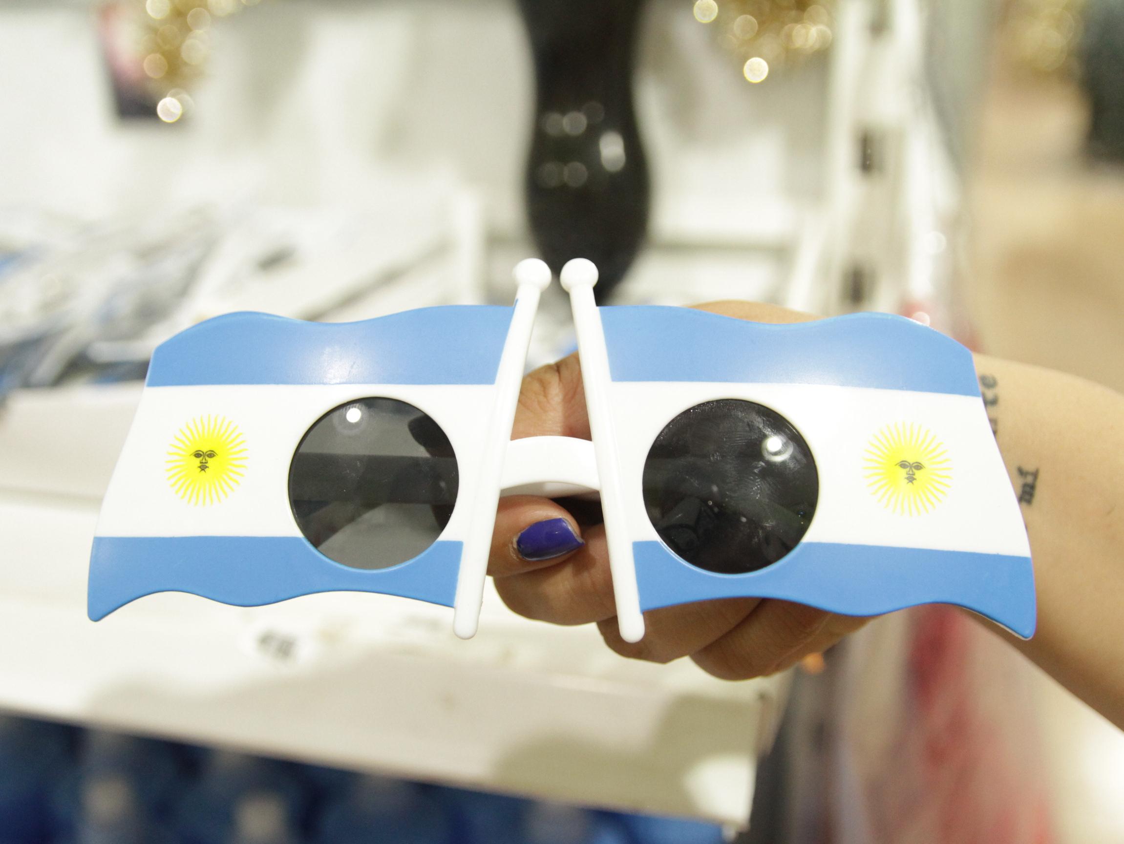 En pleno verano, los lentes de sol son un producto muy usado, y qué mejor que sean con detalles celestes y blancos. Estos anteojos, que son de juguete, tienen un costo de $580 y son muy demandados por los niños.