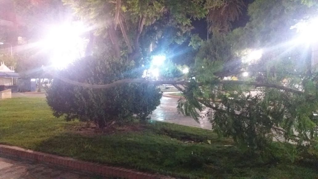 Alfredo Nardi, titular de la Dirección de Protección Civil, afirmó que el episodio más importante fue la rotura de la carpa del circo que terminó con dos adultos y un menor heridos, pero la caída de árboles y postes generaron inconvenientes en varios puntos.