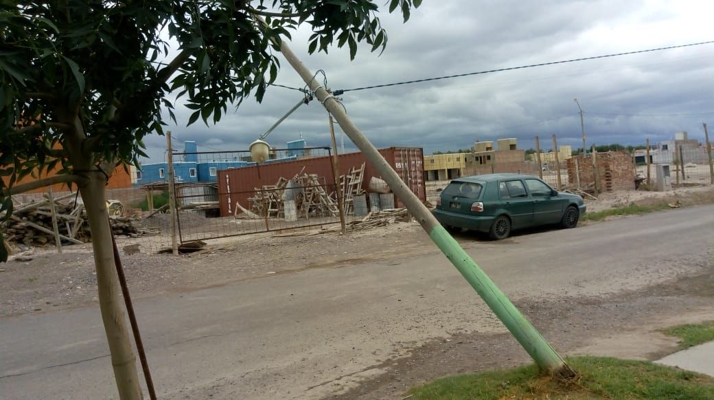 Un poste cayó sobre una vivienda en Santa Lucía generando daños estructurales.