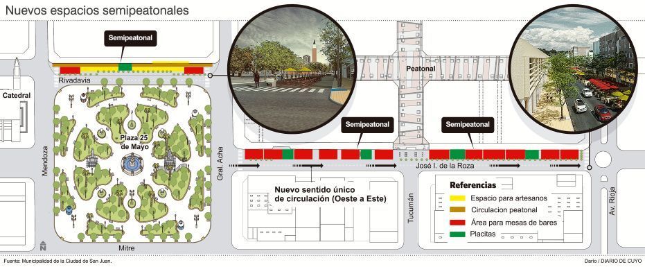 * Si bien en principio el paseo se mantendrá hasta finalizar la obra de la Peatonal, si los sanjuaninos aceptan el sitio, se buscará que quede de modo definitivo.