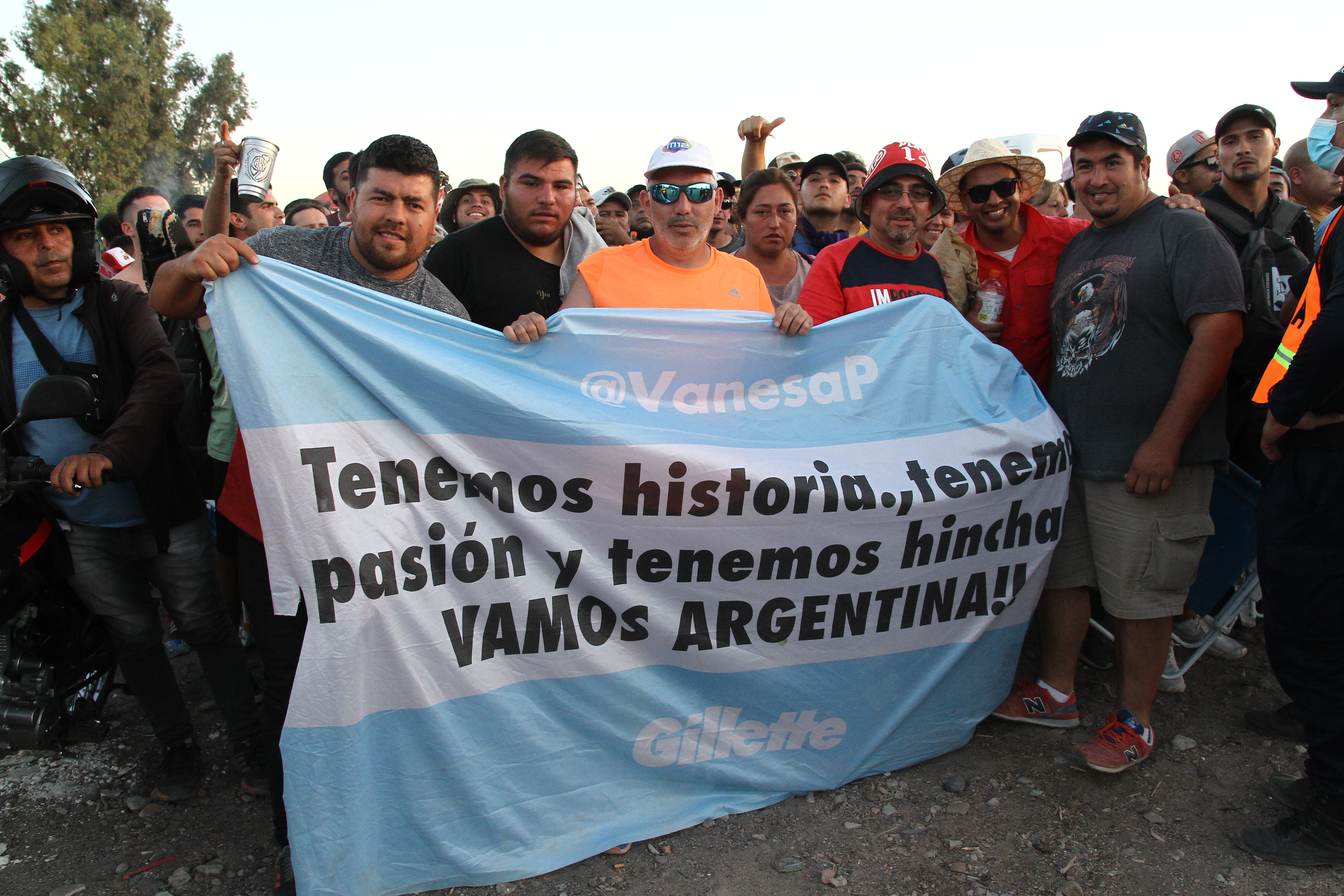 Ahora, lo curioso es que a pesar de la distancia apostaron a ‘la aventura’, porque viajaron en avión hasta Mendoza y de ahí se trasladaron vía terrestre directo por la Ruta 40 hasta donde los dejara llegar la policía, siguiendo las inidicaciones, para intentar comprar entradas bajo la modalidad presencial. "Si no se puede ahora, lo intentaremos también vía online", aclaró Jean Paul como el ‘Plan B’, para estar el martes a las 14,30 en el Estadio Del Bicentenario. ¿La opción de un paquete turístico? "Decidimos todo muy rápido, no encontramos nada y por eso decidimos viajar y ver si las podemos conseguir directamente acá", respondió. En ese momento vio que se habilitaba que pasara un grupo de vehículos y decidió acercarse a una camionea y pedirle al conductor que si le permitía subirse a la caja trasera. Cuando el dijo de donde era, consiguió el permiso. Los otros tres empezaron a hacer lo mismo.