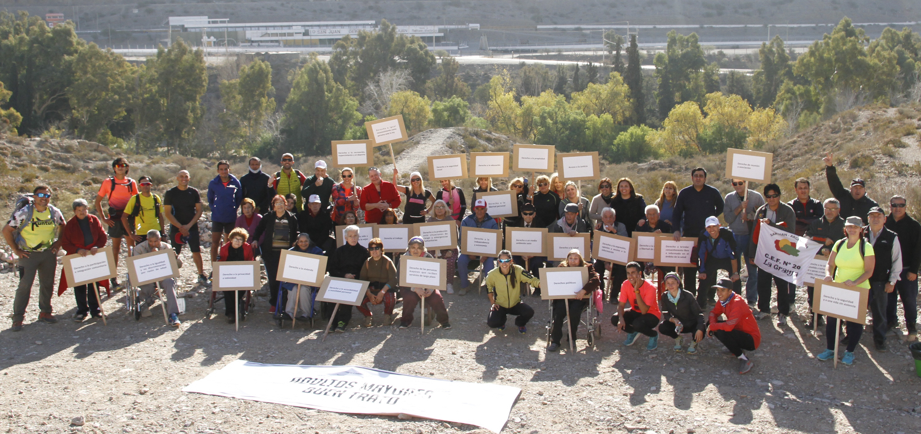El sol y el calorcito se complotaron para contribuir con el éxito de la actividad que tuvo como fin luchar contra el maltrato a los adultos mayores. Se trata de la jornada de trekking intergeneracional que se realizó ayer en la Quebrada de Zonda, Rivadavia. La organizaron los propios residentes del Exhogar de Ancianos que caminaron entre los cerros junto a jóvenes que quisieron participar de la propuesta. Recorrieron 700 metros en los que sobró alegría y buen trato.