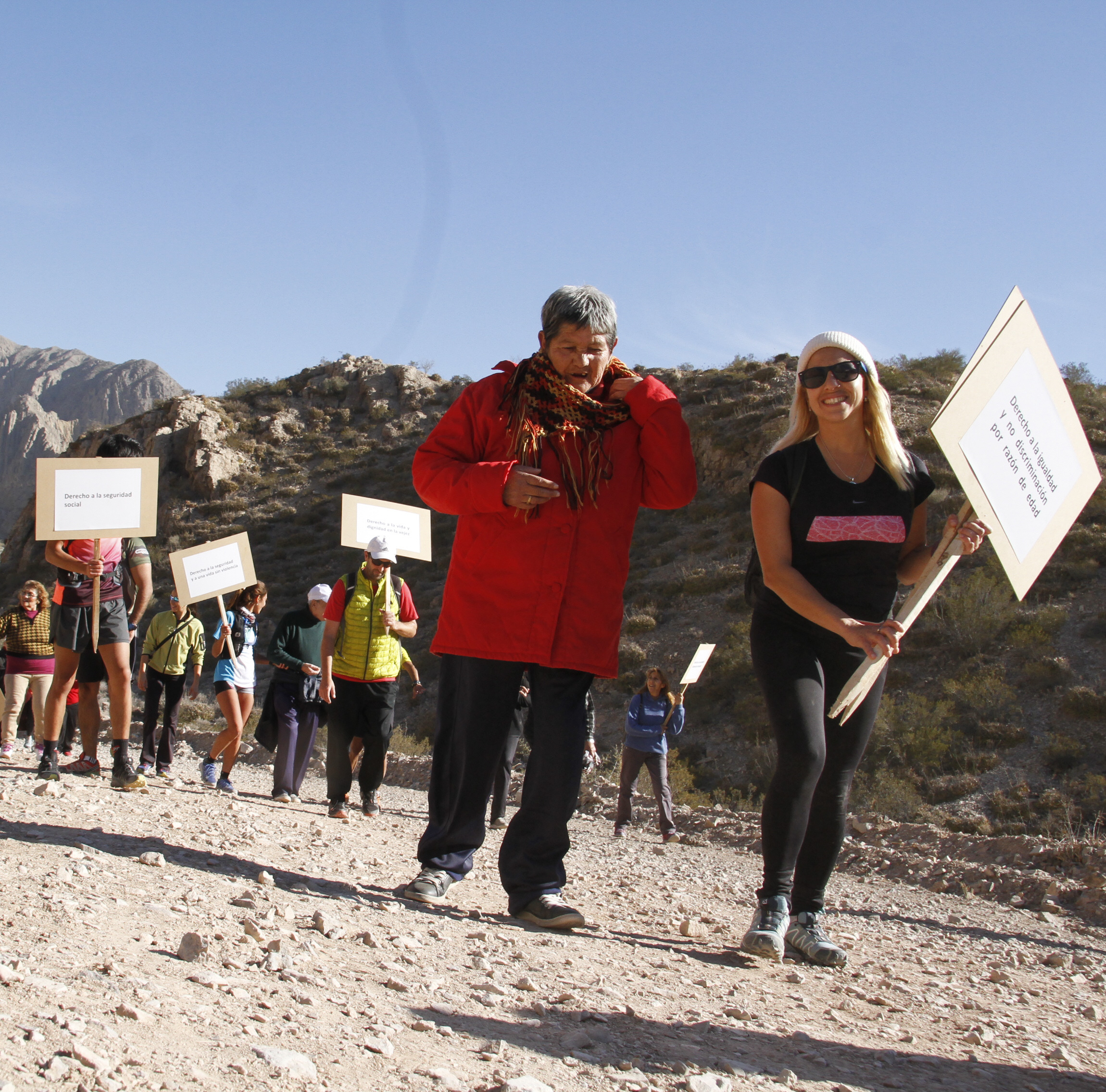 Uno de los primeros en emprender la marcha fue Felipe Flores, de 74 años, que desde hace poco más de un año vive en la Residencia Eva Duarte de Perón. También fue uno de los pocos que hizo todo el trayecto sin necesitar asistencia. Fue porque su admiración por el paisaje pudo más que el cansancio. "Qué hermosos nuestros cerros, no hay nada igual. No conocía este lugar así que esta salida ha sido muy positiva para mí", dijo el hombre.