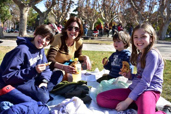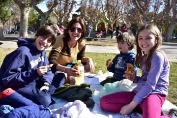 Diana junto a sus hijos Lorenzo (11), Brenda (8) y Sabino (3), eligieron otra alternativa al locro y, sentados en el pasto, almorzaron empanadas siendo parte de un festejo histórico por los 200 años de la Independencia.