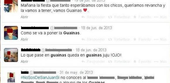 Luego del aberrante ataque a la menor en una fiesta de Santa Lucía, las primeras denuncias públicas que se realizaron a través de las redes sociales mencionaron a un grupo llamado Guainas como autor de la agresión. Y aunque la Justicia no puede determinar aún a los responsables del hecho, los denominados Guainas quedaron involucrados casi como si se tratara de una pandilla. Pero en realidad son un grupo de unos 15 a 20 jóvenes pertenecientes a familias de buen poder adquisitivo, que armaron un par de fiestas (las fuentes afirmaron que fueron ilegales porque era con menores y había alcohol) y que tenían una importante presencia en las redes sociales, con varios seguidores. Algunos de los que son mencionados como integrantes de los Guainas salieron a despegarse del hecho y dijeron que fueron quienes auxiliaron a la chica cuando estaba inconsciente.