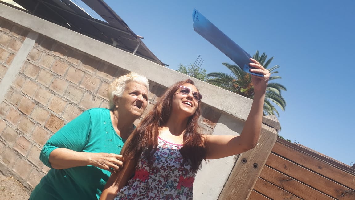 Silvina y Silvia son madre e hija, viven sobre calle España casi Ignacio de la Roza y salieron a la calle a observar el fenómeno. Con una radiografía en mano para protegerse la vista, lo vivieron con entusiasmo: "Nos encanta, el año pasado ya nos gustó mucho y no nos queríamops perder éste de ahora".
