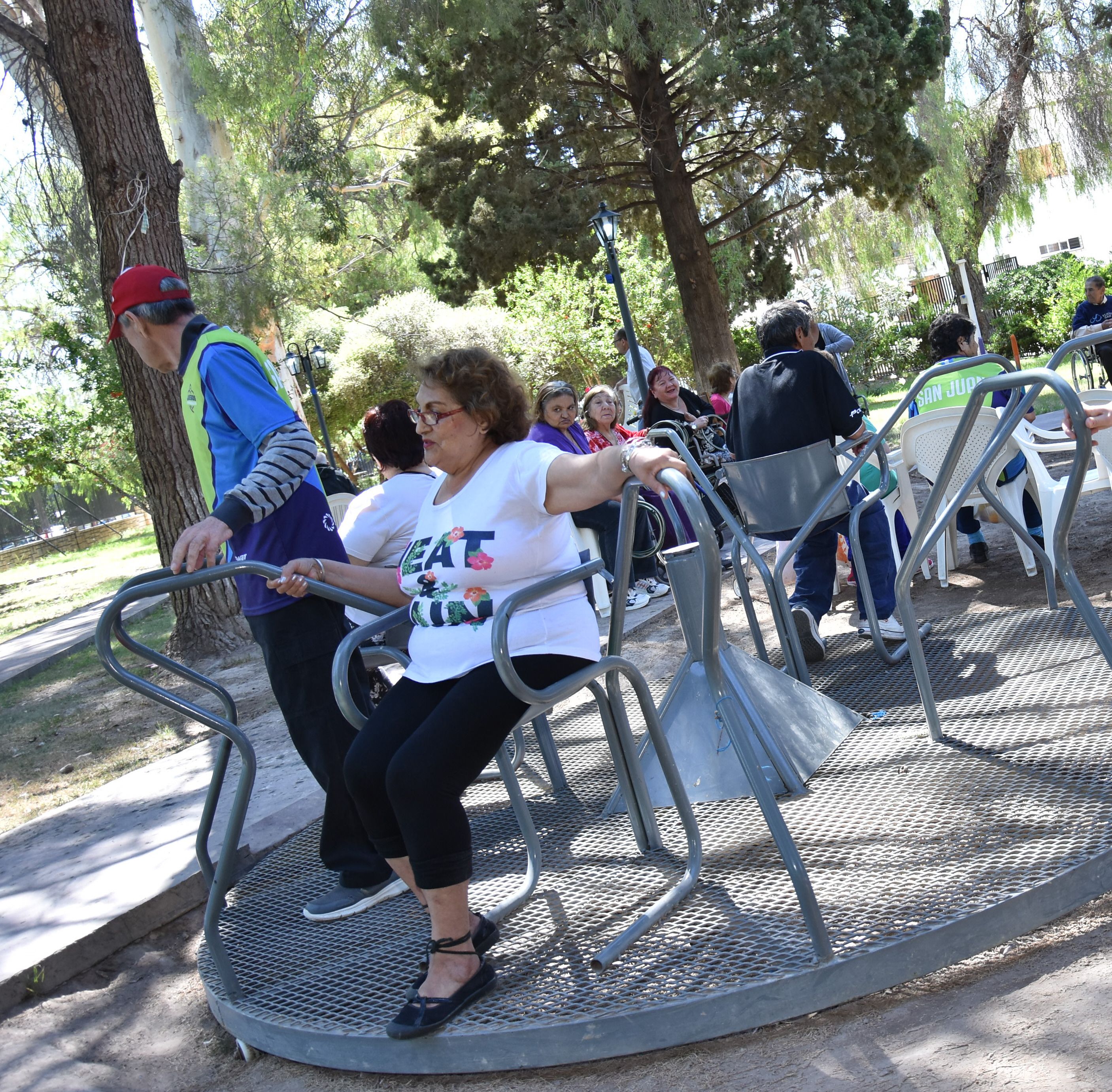 Atracción. Las calesitas adaptadas son uno de los entretenimientos preferidos por los abuelos. Son parte de la nueva plaza.