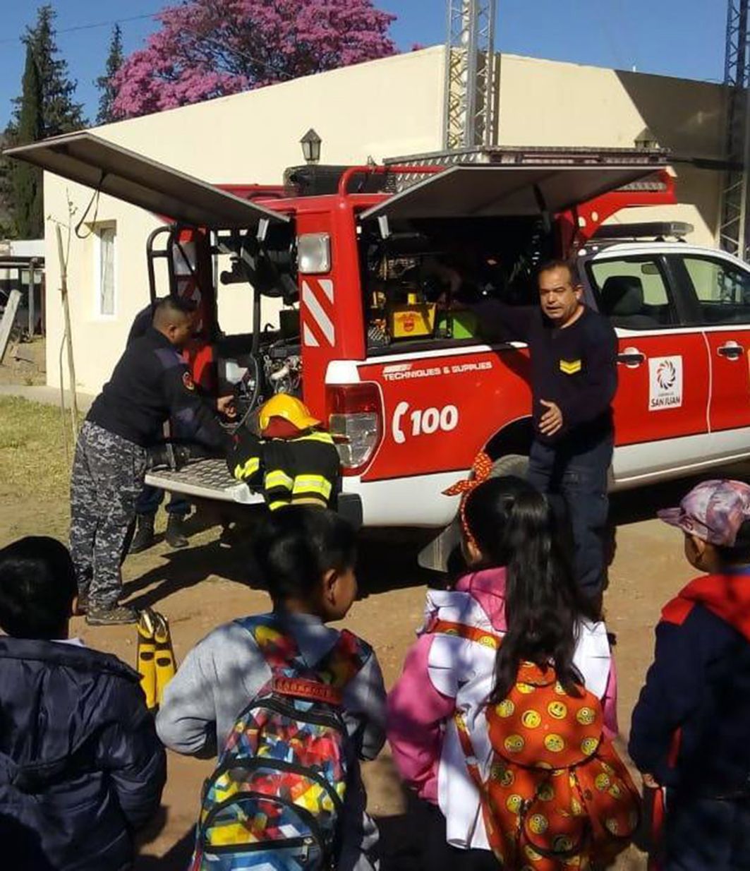 Entusiasmo. Los alumnos de la Escuela Provincia de Formosa disfrutaron de la visita a la División Bomberos, con quienes aprendieron algunos tips para prevenir incendios.
