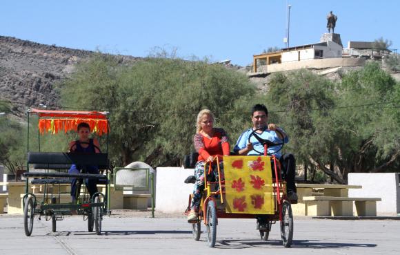 Las calles del complejo sanmartiniano se llenan los fines de semana. Miles de personas recorren las instalaciones y desde hace unos días es habitual escuchar las risas de la gente que pasea en esos extraños autos a pedal. Entre los vehículos y los peatones que visitan el paraje, esas movilidades son la atracción entre los grandes y los chicos. Con flecos de colores, techo de lona verde o anaranjada y con asiento para 4 personas, estos autitos o bicicletas, como les dicen en la zona, hacen que una jornada en Ceferino se vuelva más atractiva.