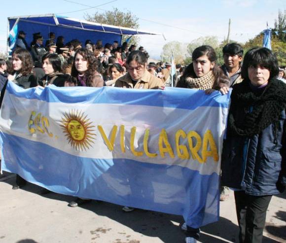 A la cabeza del desfile marcharon primero los centros de jubilados del departamento, llevando orgullosos su bandera y estandarte. A ellos siguieron las escuelas del departamento, veinticuatro en total, con una particularidad: tras las escuadras de los alumnos, seguían los docentes acompañando a sus chicos en ordenadas hileras y llevando algún accesorio, pañuelo o chalina, con los colores celeste y blanco.