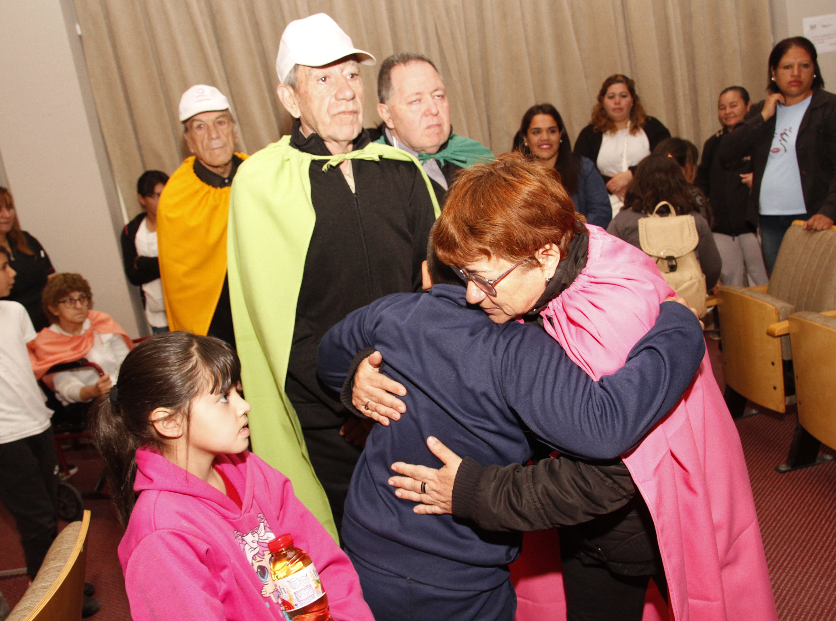 "Gracias por venir a visitarnos y hacernos un poco más felices", fue la oración con la que se inició sin querer un proceso de toma de conciencia. La dijo uno de los abuelos que representaron superhéroes en la obra "La liga de la Justicia" y que se emocionó ante el aplauso de los cientos de chicos que asistieron al lugar para vivir una jornada intergeneracional y que aprendieron una lección: que tienen que valorar a sus abuelos. Fueron los alumnos de diferentes escuelas primarias y secundarias que compartieron el día con los adultos mayores de la Residencia Eva Duarte, con quienes dejaron inaugurado el Jardín del Encuentro. Esta actividad fue en el marco del Programa Nutrición en Vivo, que dirige Olga Álvarez de Manzano, para inculcar sanos hábitos de alimentación.