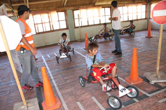 Al ver que los chicos tenían clara la situación, el instructor decidió pasar a la práctica. No hizo más que señalar los 5 kartings estacionados para que los asistentes formaran fila, a los empujones, para abordarlos. No pudieron hacerlo de inmediato. Primero tuvieron que contestar una pregunta. Quien respondiera correctamente pasaría a ocupar uno de los vehículos. Y los chicos volvieron a demostrar su conocimiento acerca de las normas de seguridad vial.