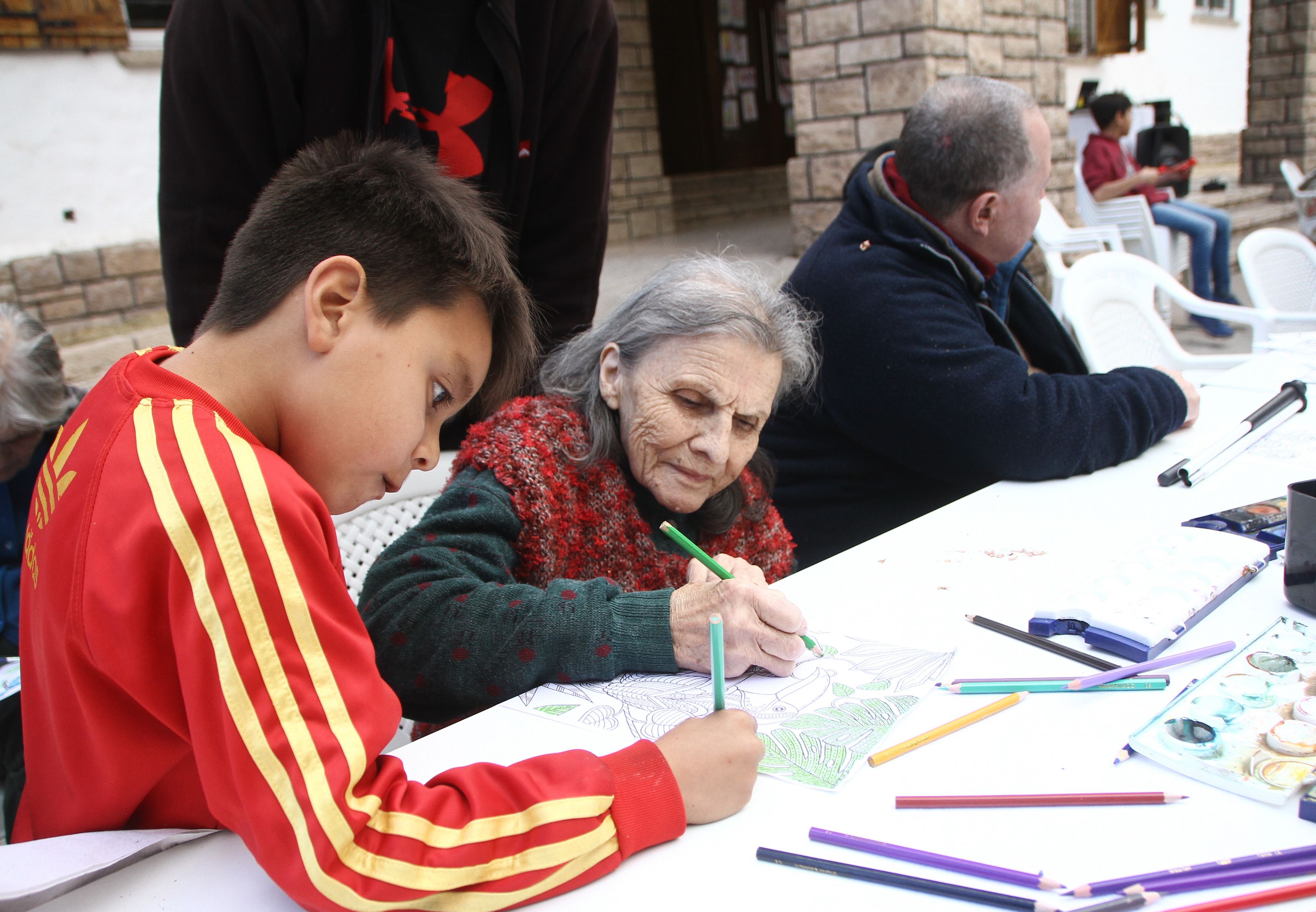 Durante más de una hora niños y abuelos dibujaron y pintaron para divertirse en las primeras horas de la tarde. Quisieron comenzar la jornada de esparcimiento con esta actividad más tranquila para ir "calentando motores". Es que después participaría en juegos con mayor adrenalina como el de probar puntería o mostrar las habilidades para el baile de diferentes ritmos.