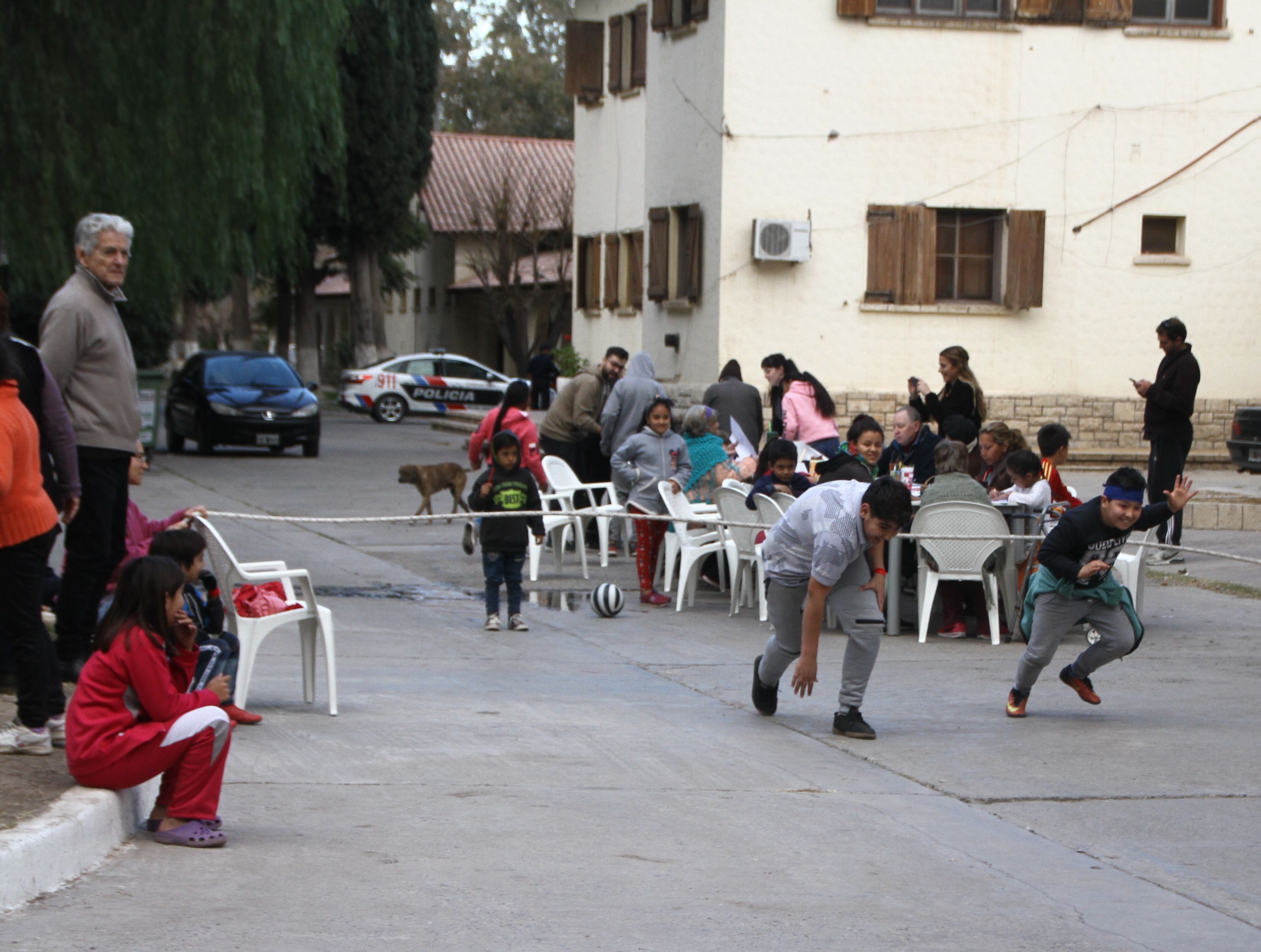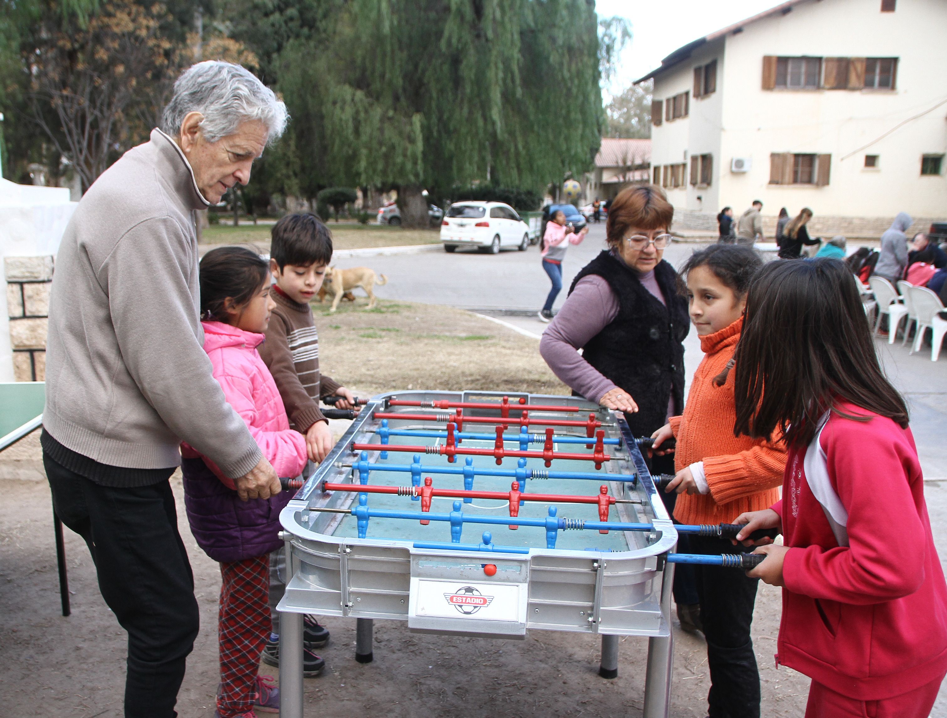 Avanzó la tarde y el frió se intensificó, al igual que la diversión. Para contrarrestar las bajas temperaturas algunos niños comenzaron a jugar al fútbol, actividad a la que se sumaron los abuelos en mejor estado físico. Aunque hasta los imposibilitados de correr experimentaron la adrenalina del fútbol. Participaron de la competencia de metegol con los chicos.