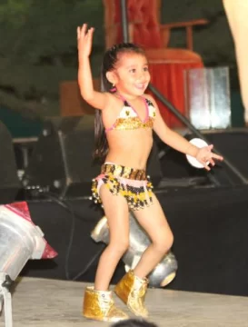 Luego las plumas y las lentejuelas se adueñaron del escenario. Es que las 5 candidatas a bailarina infantil subieron a demostrar su arte. Con ropa llamativa y sin parar de mover las caderas hicieron que entre el público sus papás hasta lloraran de la alegría. De ellas, Tiara Alanís, de 5 años (la más chica de todas las nenas), fue la que se llevo el trofeo de mejor bailarina.